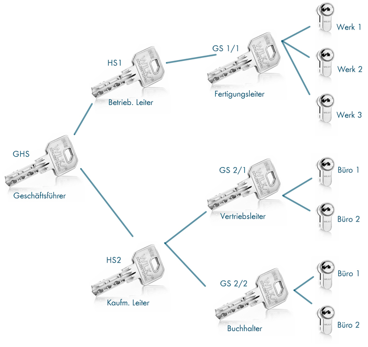 Schließanlagen sind unsere große Stärke. Durch lizenzierten Eigenbau sind wir in der Lage Ihnen preiswert, schnell und flexibel eine Schließanlage zu fertigen.